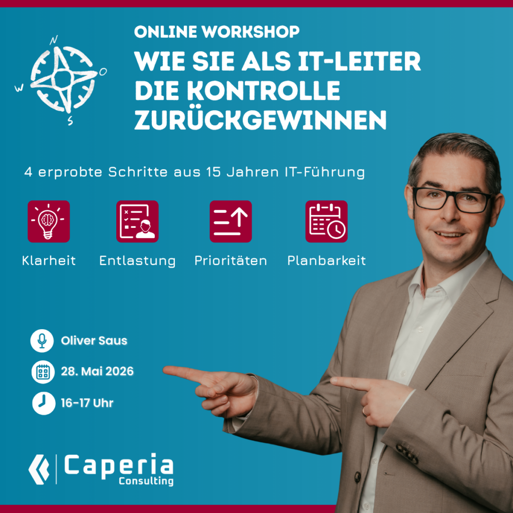 In regelmäßigen Online Workshops vertiefe ich die Themen zusammen mit IT-Leitern aus dem Mittelstand. Der Online Workshop ist kostenfrei und ermöglicht es noch tiefer zu verstehen, wie Sie die Kontrolle über Ihre IT zurückgewinnen können.